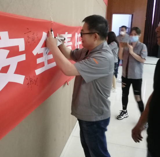 公司领导高总带头,与全体参会人员在主题条幅上签字,增加“安全生产月”活动责任感、使命感。